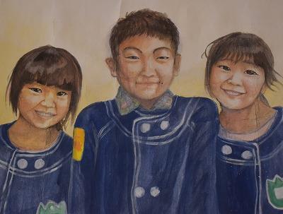 河北郡市中学校美術作品展3年生の部が、印刷室前廊下に展示されています。3年生のテーマは「身近な人」です。本校の3年生をはじめ、河北郡市中学3年生の皆さんの見事な作品が並んでいます。
