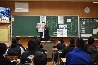 授業を担当したのは、1年1組担任の上谷先生です。担任だけでなく、学年主任として生徒皆さんあるいは学年の先生方をまとめてくれています。大変活動的で、忙しい中でも、シーズン中は趣味の登山にもよく出掛けられていました。私も画像に残した美しい風景の数々を見せてもらいました。