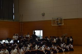 本日、加賀地区中学校体育大会兼県体予選会及び石川県中学校陸上競技大会の選手壮行会を行いました。吹奏楽部の軽快な演奏で各部が入場しました。
