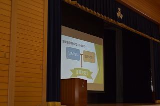 続いて、生徒会役員から生徒会目標についての話がありました。生徒会役員の皆さんを中心として、さらに素敵な津幡中学校を創っていくのは、生徒の皆さん、1人1人の力です。1人1人が大切な存在です。