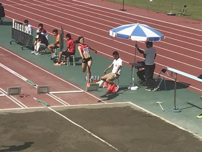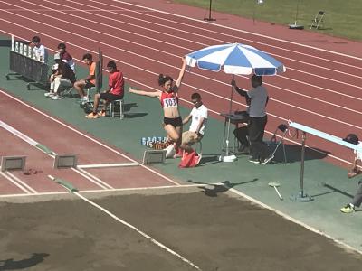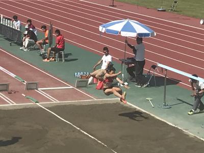本日、石川県陸上競技選手権大会1日目が、松任総合運動公園陸上競技場にて行われ、女子走り幅跳びに出場した藤本茉優さん(3年)か、見事、県チャンピオンに輝きました。3回目の跳躍で5m81を記録、最終跳躍で5m87とさらに記録を伸ばしました。高校生や大学生、社会人も出場した大会での堂々の優勝です。また、大会MVP(最優秀選手賞)も獲得しました。おめでとうございます。彼女の今年の目標は、高いレベルに置いています。さらなる飛躍に期待しています。応援しています。