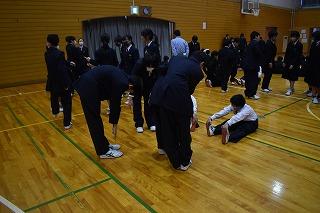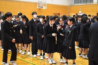 本日4限目に、1年生の皆さんを対象に「人間関係づくり講座」を開催しました。講師は本校スクールカウンセラーの古市先生です。「さる、パンダ、バナナ」の中で仲間はずれはどれかを考える、絵などを見て何が見えるか考える、クラスごとに無言で誕生日順(1月から)に並び替える、小グループでジャンプの高い順や体のやわらかさ順に並ぶ、グループの人たちで共通するものはいくつあるか数える、など様々な活動に取り組みました。