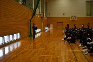 本日5限目に、避難訓練を実施しました。今回は地震発生後、近所の民家より出火したとの想定で、避難経路確認及び迅速な避難場所への移動を目的として行いました。天候不順のため、今日はグランドではなく、体育館に避難しました。訓練の様子を津幡町消防本部の方に見ていただきました。概ねよいとの評価をいただきましたが、避難指示後の廊下への整列をもう少し迅速にできると、なおよいとの指摘もいただきました。1月1日に能登半島地震が発生したように、地震等の自然災害や火災や不審者等の緊急事態は、いつ起きるか分かりません。その時に、自分の身を自分で守ることができる行動、指示に従い冷静な行動をとることができるようにしなければなりません。