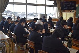 さて、2年生のこのクラスの授業及び1年生の国語を担当いただいている鷲尾先生は、17日(金)からお休みに入ります。新しい命が無事誕生しますことを、教職員一同心からお祈りしています。落ち着いたらまた、学校に顔を見せに来てください。