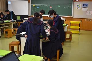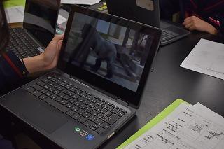 3年生理科の授業。「どの順でヒトに進化していったのだろう」を課題に、ゴリラ、オランウーマン、チンパンジーの進化順番を考えていました。体格、寿命、食生活、妊娠期間、脳の大きさの基本情報、手形、頭骨を参考に、あるいはクロムブックで情報収集しながら、どの順番でヒトに進化していったのか、自身の答えを導き出そうとしていました。自身の考えを発表する場面にも立ち会いました。「ここを根拠にこう考えました」としっかりと考えを述べる姿に感心するとともに、生徒の答えに問い返しながら、全体での学びを深めていく先生の姿にも感心しました。知的好奇心をくすぐられると、子ども達は自ら学びに向かっていきます。