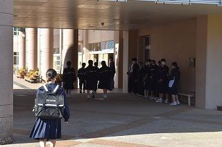 私たちは日常生活の様々な場面で人とあいさつを交わしています。「あいさつはお互いの心を和ませ、人間関係を円滑にする、あいさつはコミュニケーションの第一歩」などは、皆さんも十分に分かっていることだと思います。あいさつをはじめとする礼儀の根底にあるのは、相手を思う気持ちであり、礼儀や作法は相手を思いやる心が態度や言葉として形になったものです。私自身も、礼儀の根底にある心の部分を忘れず、形のみにならないよう、明日からも玄関に立ち、生徒の皆さんを迎えたいと思います。