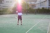 フォアハンドでボールを捉える際の、スタンス(足の位置)とタイミングを体に覚えこませる