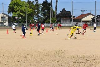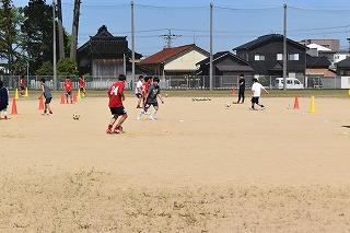 お隣では、女子チームが練習。再来週のあさがお大会、6月の加賀地区兼県体予選大会に向けて、一試合を通して走り切れるだけの体力アップ及びチームしての戦術確認に取り組んでいました。なんだか最近、女子チームの練習を見るのが楽しみになってきました。