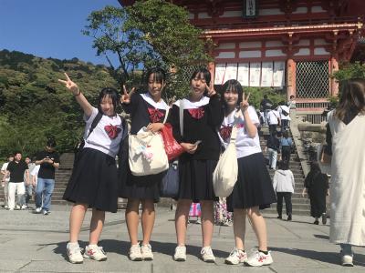 予定より少し早く京都駅に到着し、京都市内班別タクシー研修のスタート場所に移動。今から自主プランのスタートです。快晴の京都です。タクシーの運転手さんに感謝の気持ちを持ち、京都市内を満喫してきてください。行ってらっしゃい!生徒達は、各班のプランに従って京都市内を観光し、15時15分までに全グループが、清水寺に集合、清水寺を散策し、16時30分に出発、宿泊先ホテルに向かいます。18時ホテル到着、19時より夕食の予定です。