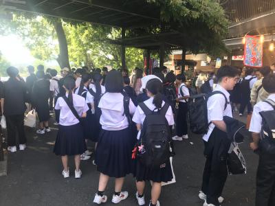 暑い日となりましたが、体調を崩す人もおらず無事に終えることができました。博物館や美術館、神社などを見学したり、和菓子作りや伝統工芸品の体験学習をしたり、みなさんのいきいきとした活動を多くみることができました。今回計画通りに進まなかったり、時間を守れなかったりした班もあり課題も残りました。今日の成功・失敗に関わらず今後に生かしていくことが本当の成功になります。この経験を1年後の京都自主プランにつなげていきましょう。実行委員のみなさんありがとうございました!