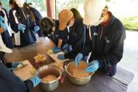 入学して初めての行事となる遠足に行ってきました。地域にある神社や史跡を見学した後、石川県森林公園まで往復12kmほどを頑張って歩きました。森林公園では炭火を使ったハヤシライス作りに挑戦し、どのグループも上手に作ることができました。みんなで協力して作り、自然の中でいただくハヤシライスの味は最高でした。一人一人が遠足のルールやマナーを守ることを意識し、安全に楽しく過ごすことができました。解散式では、ほとんどの生徒が、学年目標である「181の笑顔~元気・協力・思いやり~」に近づいたと手を挙げていました。