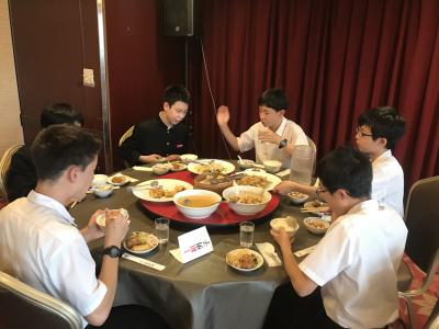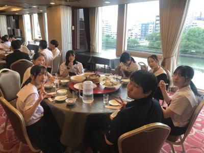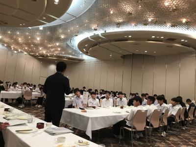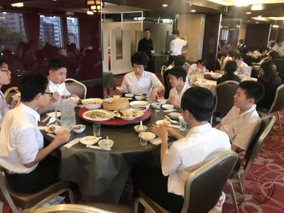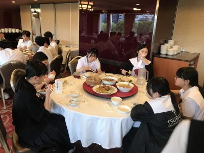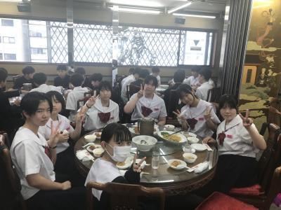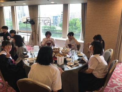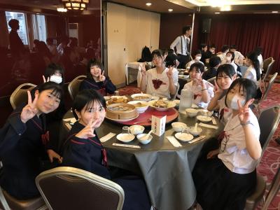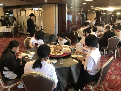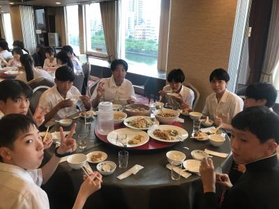 各クラス別研修を終え、夕食会場の大阪キャッスルホテルに集合。夕食は中華卓盛です。クラス別研修を終えて夕食会場に到着した皆さんは、どの顔も満足感いっぱいでした。各クラス大変充実した研修だったと先生方からも聞きました。18時30分頃に出発し、宿泊ホテルに戻ります。修学旅行2日目、少し疲れも出てくる頃です。部屋内では、お土産などの荷物の整理、しおりの記入、シャワーを済ませてしっかり体を休めて、明日のUSJに備えてくださいね。修学旅行2日目、生徒の皆さん、お疲れ様でした。先生方、添乗員の皆さん、バスガイドさん、運転手さん、カメラマンさん、ありがとうございました。3日目最終日の明日もよろしくお願いします。