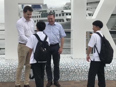 修学旅行2日目の朝。少し早起きしてホテル周辺を散歩しました。上空には少し雲がかかっていますが、天気は大丈夫そうです。朝の空気はひんやりと気持ちよかったですが、今日も暑い一日になりそうです。