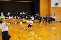 各種の体力測定も終わり、バレーボール競技に取り組み始めているようです。バレーボール部員に、アンダーハンドパス、オーバーハンドパスの手本を示してもらいながら、それぞれのパスのポイントを確認し練習しました。正確にパスを味方に届けるには、素早くパスを出しやすい位置に動くことを忘れないでくださいね。