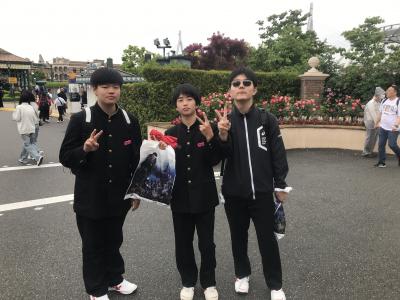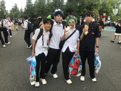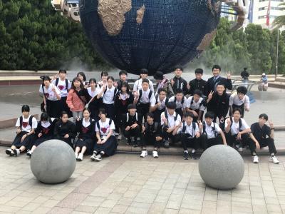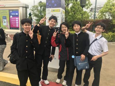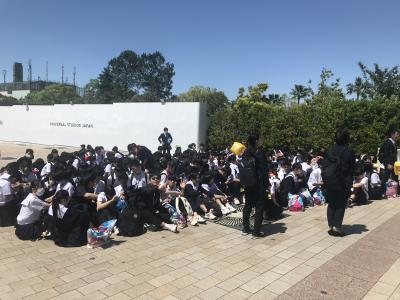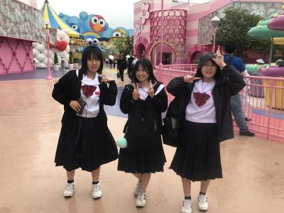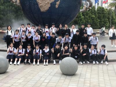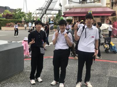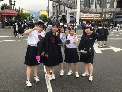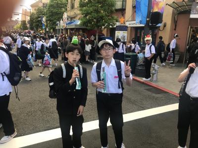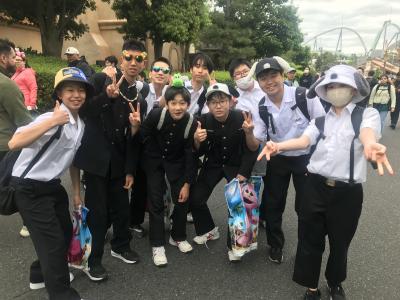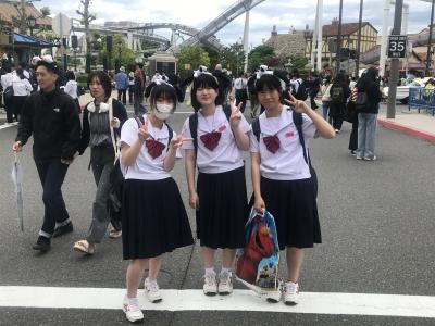 USJ駐車場に到着。USJに移動してクラスごとに写真撮影、いよいよ入場です。雲りでやや肌寒いですが、みんな元気いっぱいです。皆さん、思い切り楽しんできてください!