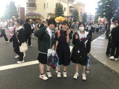 USJを満喫し、14時過ぎに学校に向けて出発しました。