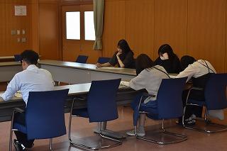 今日は日中の気温が30度近く、明日以降も気温が高い日が続くとの予報が出ています。保健体育科の授業においては、こまめな休憩と水分補給を心掛け、熱中症防止に努めながら授業を進めています。午後からの体育の授業では、本来ならばグランドで50分間授業するところですが、バトンパスの基本動作を直射日光を避けた場所で行い、グランドでの活動時間を制限して行っていました。