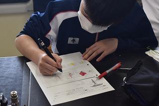1年生理科の授業。「花のつくりにはどんな特徴があるのか」について調べていました。サツキとアブラナの花を外側からピンセットで丁寧に外し、テープで張り付け、枚数や本数、特徴など気が付いたことを書き込みました。「ひとつの特徴も見逃さないぞ」という気持ちが、みんなの真剣な顔から溢れていました。自ら学ぼうとする意欲が、学習したことが定着する大きな力となりますね。