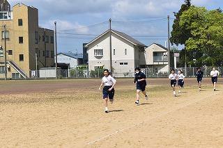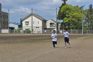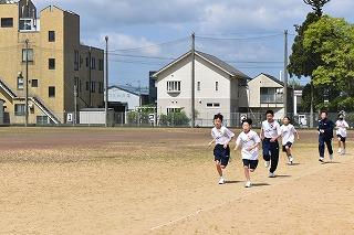 1年生保健体育科の授業。今日は、体力測定の「持久走」に取り組んでいました。男子は6周、女子は4周の記録を測ります。持久走が得意な人もいれば少し苦手な人もいます。それぞれが自己記録を目指しての懸命な走りでした。そして、何より素敵だなと思ったのは、走り終わった人やペアで記録を測定している人たちが、「がんばれ!」「もう少し!」と走っている仲間に、声かけしている姿でした。