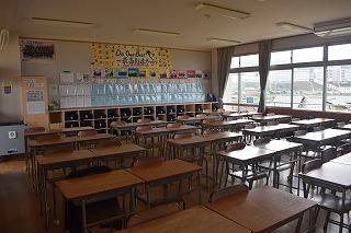 1、2年生の空き教室の様子。美しい学びの場に対する一人一人の意識が感じられます。