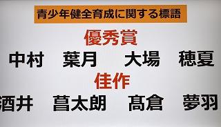 はじめに表彰披露がありました。今回もたくさんの生徒の皆さんが、大会やコンクール等で優秀な成績を収めてくれました。おめでとうございます。