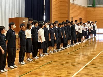 中間テスト終了後の6限目に、後期生徒会役員任命式を行いました。