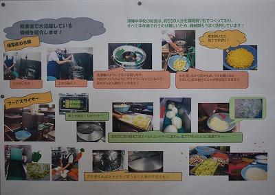 また、エレベーター目階段の1階から2階へ上がるところの食育コーナーの掲示がリニューアルされています。今回は、「給食室で大活躍してい機械」の紹介です。ぜひ、立ち寄って見てみてください。