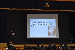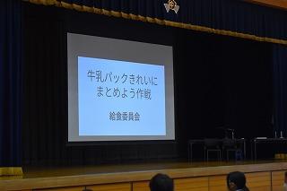 生徒会タイムでは、給食委員会から、「牛乳パックきれいにまとめよう作戦」の取組結果報告がありました。給食委員会からの呼びかけに、各クラスが応えて改善した結果を聞くことができ、うれしい気持ちになりました。さらに素敵な学校を創っていくのは、あなたたたち自身です。
