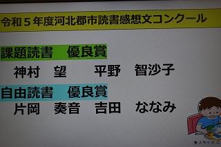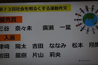 1限目の時間に、全校集会を行いました。はじめに表彰披露がありました。今回も各種大会やコンクール等で、たくさんの皆さんが頑張ってくれました。本当にうれしい限りです。