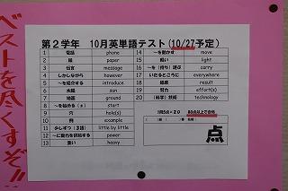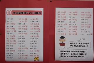 2年生英単語テストの結果が学習室前の掲示板に張り出されていました。前回よりも合格者数が11名増えています。英単語等の覚え方は以前にホームページで紹介したと思いますが、自分に合う覚え方を早く見つけて、継続して取り組んでいってください。地道な努力が最後は大きな力となって自分自身に返ってきますよ。
