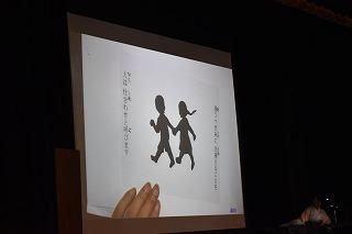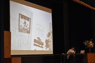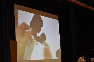 紙切りパフォーマンスの実演や切り絵を使った朗読を披露いただきながら、これまでに至る道のり『小学生の頃は人前で発表するのが苦手。中学時代はテニス部、自分の進路について考え始める。高校生になり、絵を描く仕事をしたいとう夢を持つ。毎日一生懸命絵を描き、美術大学に進学。絵の仕事を探しながら、父の仕事を手伝う中で、お客さんを喜ばせようと目の前ではさみを使って切り絵をつくったことがきっかけとなる。病院にも勤務。患者さんに切り絵をプレゼントし、喜ぶ患者さんの顔を見て、切り絵を仕事にすることを決心。たくさんの研究と失敗を繰り返しながら技術を身に付け、人を笑顔にする切り絵を仕事にすることができる。一番うれしいことは、子ども達に切り絵を教え、伝えること。』を振り返っていただき、これからを生きる子ども達に向けて、大切なメッセージを届けていただきました。『自分の好きなことに、自信を持って、自分を信じて、続けること』