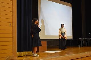 学習担当の鶴山先生からは、全校で取り組んでいる表現力トレーニングについて話がありました。自分の考えを持ち適切に相手に伝えられるよき話し手、相手の考えをしっかりと受け止められる聴き手になれるよう授業も含めてしっかりと取り組んでいきましょう。