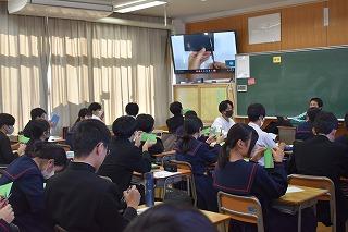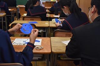 体育館での講演後は各教室に戻り、モニター画面からの水口先生の指導のもと、切り絵にチャレンジしました。みんなとっても楽しそうでした。完成が楽しみです。