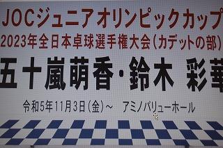 さて、本校女子卓球部の五十嵐萌香さん(2年)と鈴木彩華さん(2年)が、明日3日(金)から徳島県鳴門市のアミノバリューホールで行われる「JOCジュニアオリンピックカップ2023年全日本卓球選手権(カデットの部)」に出場します。自分の力を信じ、精一杯のパフォーマンスを発揮してきてください。津幡町の空から声援を送ります。健闘を祈ります。