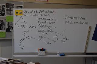 おおぞら学級での数学科の授業。今日の課題は〈ある三角形と合同な三角形を書くには何がわかればいいか?〉
