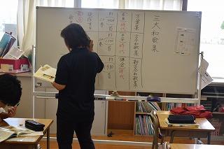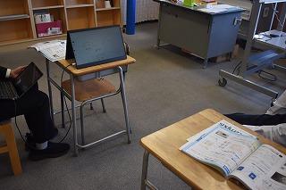 おおぞら学級の授業。授業に少しおじゃましたときは、1年生は理科、2年生は国語の学習中でした。それぞれ、先生と一対一でやりとりをしながら、学びを深めていました。