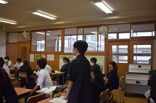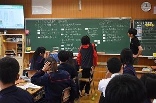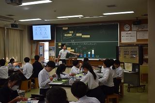 2年生国語科の授業。現在、徒然草を学習中。今日は、徒然草の一節「高名の木登り」(高名の木登りと言ひし男〜)について、学習していました。兼好法師の伝えたかったことについて、個人及び協働で確認し、日常生活で生かせることについて考えました。
