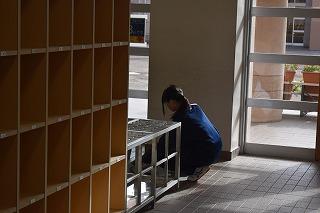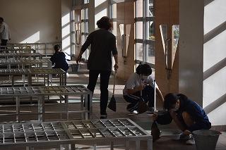 また、今日は、学校で体験活動に取り組んいる人たちもいました。山本、上谷校務員とともに、生徒玄関周りの清掃などに取り組んでくれました。とってもきれいになりました。