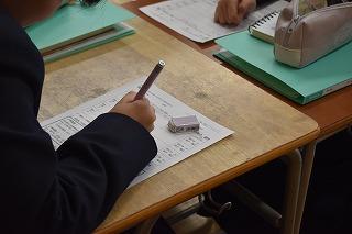 1年生音楽科の授業。シューベルト「魔王」の鑑賞の授業。曲を聴き、語り手、魔王、父、息子の4人の歌声の特徴についてまとめていました。「魔王」には、4つの役が登場しますが、1人の人が4つの役を全部歌うんですね。それぞれの歌い方はどのような特徴があるのか、音色、高さ、調性の観点で、まとめていました。