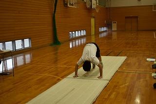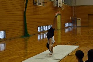 1年生保健体育科の授業。今日はマット運動の発表会でした。三つの技を連続して行いました。練習した成果を発揮しようと一人一人真剣に自分が練習してきた技にチャレンジしていました。クラスメイトの演技が終了した後の温かい拍手も素敵でした。