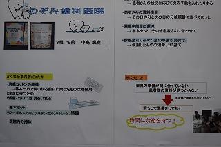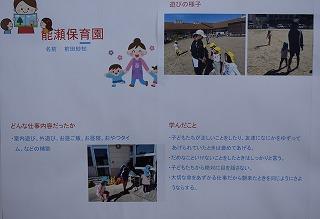 2年生各教室前には、「職場体験レポート」発表のために作成したプレゼン資料のいくつかが掲示されています。掲示されているものはどれも、各スライドにわかりやすく情報が整理されていてるなど、聞き手を意識したものになっています。そして何よりも、職場体験を通して、学生時代に大切にしたらいいと思うこと、生きていく上で大切なことを、お世話になった職場の方々から学んできたことがうれしいです。