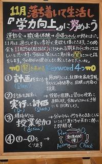 今週が終わりました。まずは、今週もそれぞれの場所で過ごすことができた自分自身を誉めてあげてください。よくやりました。お疲れさまでした。今週は、一気に気温が下がり、冬がもうそこまで来ていることを感じる一週間でした。風邪や発熱でお休みした人あるいは流行中のマイコプラズマに罹患した人もいました。来週は、日中の気温は比較的高くなるとの予想が出ていますが、登下校中の防寒着の着用や天候や予想気温に合わせて適切な服装を選択するなど身だしなみも整えて、体調管理には十分注意して過ごしてください。