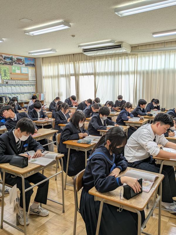 今日は3年生が第3回郡市統一テストに臨みました。よく「受験は団体戦」という言葉が使われます。クラスのみんなで受験に向かう雰囲気を作り出すことで、つらい受験勉強も乗り越えていけると思います。