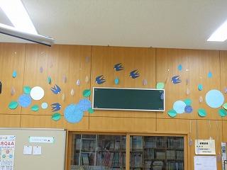 5月26日に図書ボランティアの皆さんにご来校いただき、図書室の夏の飾りつけを行いました。次回は7月7日にご協力いただきます。ありがとうございます。