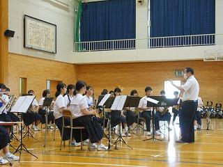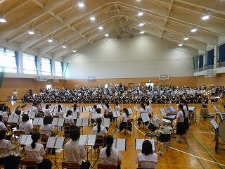 午後4時30分から始まった夕すずみコンサート。400名を超えるお客様を迎え、100名近くの方には立ったまま聞いていただく状況となってしまいましたが、プログラムも盛りだくさんで、大盛況のうちに終えることができました。お客様方からも「夏の良い思い出ができた」「中学生だけでなく高校生の生き生きした演奏・演技・表情を見て、元気をもらった」というコメントを多くいただきました。地域の皆様、そして遊学館高校の吹奏楽部・ストリートダンス部・バトントワリング部の皆さん、本当にありがとうございました。