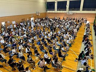 今月27日(土曜日)にPTA主催の「夕すずみコンサート」を行います。令和2・3年度は中止としましたが、今年度は感染防止措置に努め、3年ぶりの開催を決定しました。今年は本校の吹奏楽部とともに、遊学館高校の吹奏楽・バトントワリング・ストリートダンス部の皆さん約100名に登場いただきます。どんな演奏・パフォーマンスを披露いただけるのでしょうか。皆様、お楽しみに!