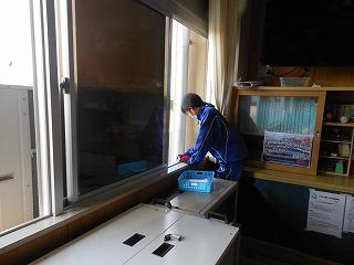 ▽コンサート終了後、遊学館高校吹奏楽部の皆さんは控室の掃除をしていました。楽器の積み込みなどもあったのに、ここまでお気遣いいただき、頭の下がる思いでした。