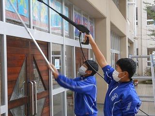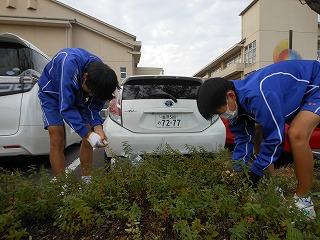 今日は朝7時30分から1時間余り、第3回奉仕作業(今年度最終回)を行いました。校地外周の草刈り(保護者と男子ソフトテニス部・男子バスケットボール部)と校舎内外の窓拭き(ボート部・サッカー部・家庭部)でご協力いただきました。ありがとうございました。