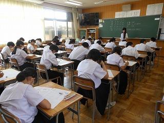 今日は午前中3教科、午後2教科で1学期期末テストを実施しました。1年生にとっては中学校2回目の定期テスト。計画を立て、ワークや学習プリントに取り組みながら、今日を迎えたようです。実力を発揮できたでしょうか。