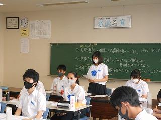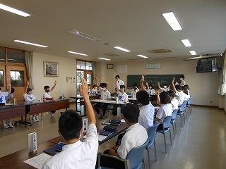 生徒会活動は会議室で生徒議会に臨んでいます。各委員会からの報告、執行部からの報告に続けて、津幡南中学校をさらに良くするにはをテーマに意見交換をしました。意見を交換するだけでなく、生徒会長からは、その意見を受けて、具体的に行動できることは何なのかを考えようとさらに積極的な呼びかけがされていました。